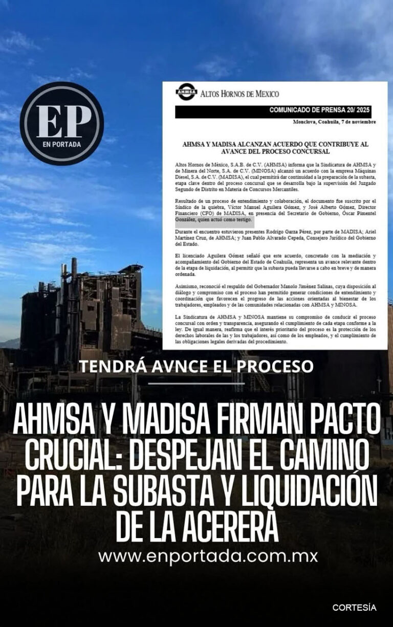 AHMSA y MADISA logran un acuerdo clave para avanzar en la subasta del proceso concursal, impulsando la liquidación ordenada de la siderúrgica. ... Leer Más