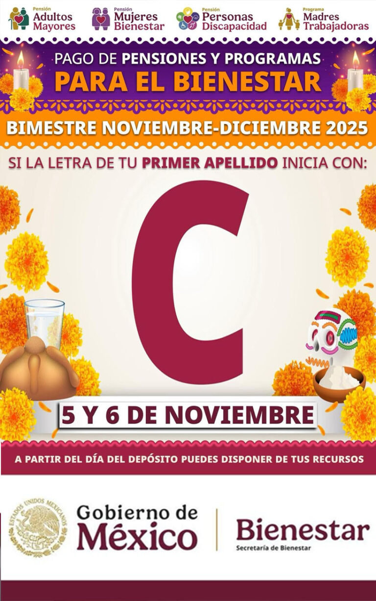 La Secretaría de Bienestar informó que este miércoles 5 y jueves 6 de noviembre de 2025 se efectuará el depósito de las Pensiones para el Bienestar a las personas adultas mayores, a las beneficiarias de Mujeres Bienestar y a las personas con discapacidad, cuyos primer apellido comience con la letra ... Leer Más