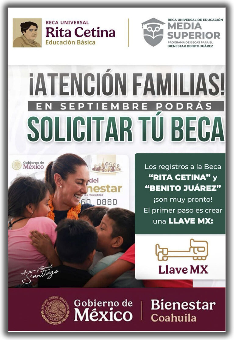 Abren en Septiembre registros para Becas Rita Cetina y Benito Juárez en Coahuila