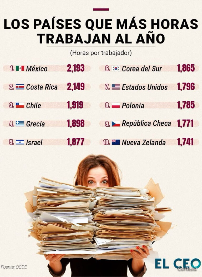 México se sitúa a la cabeza de los países con la jornada laboral más extensa, registrando un promedio alarmante de 2,193 horas trabajadas al año por empleado, según datos de la Organización para la Cooperación y el Desarrollo Económicos (OCDE). Esta cifra supera significativamente a otras naciones, ... Leer Más