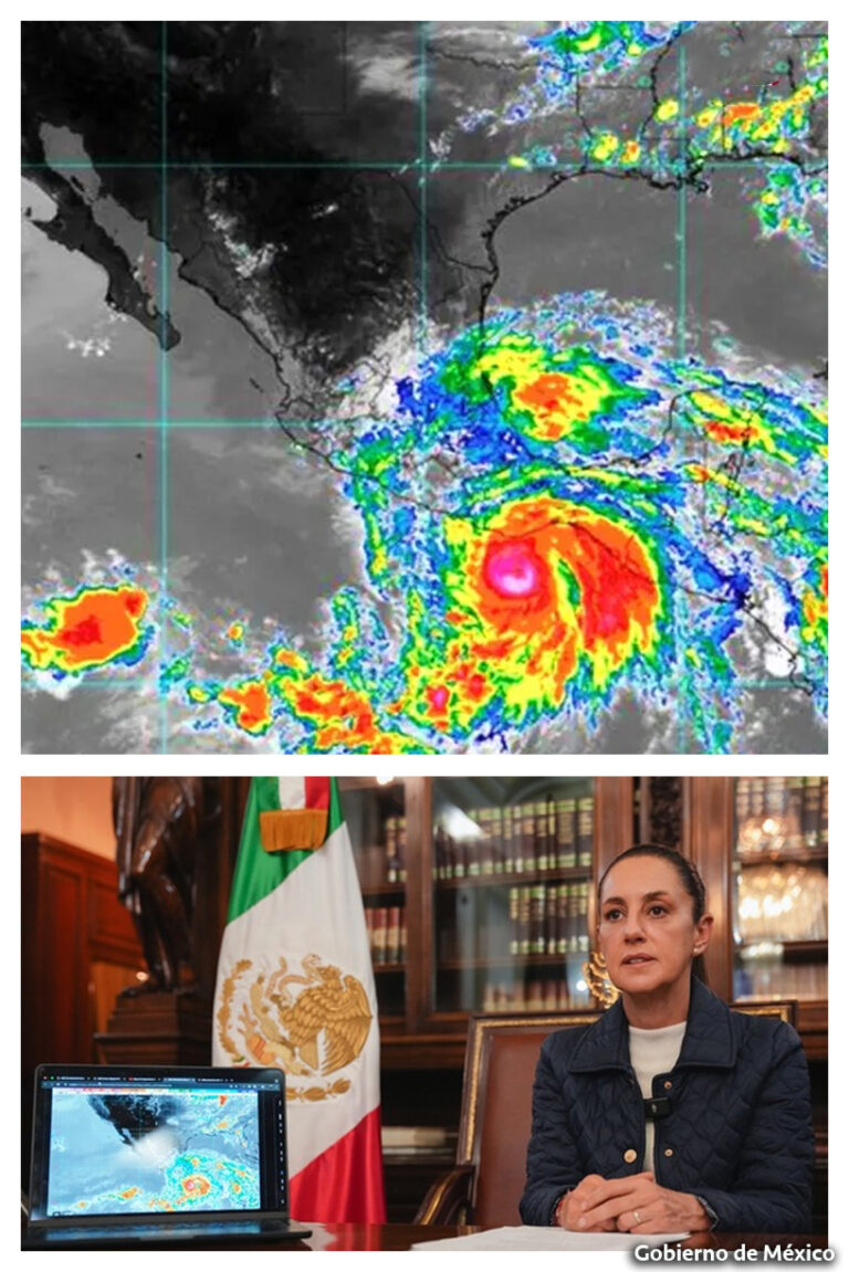 Por categoría 3 del Huracán Erick, Presidenta emite recomendaciones a los habitantes de las costas de Guerrero y Oaxaca