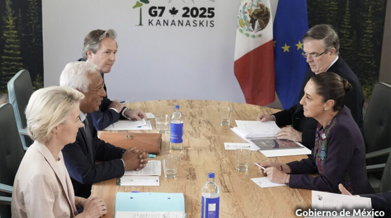 En G7, dialoga Presidenta Sheinbaum sobre actualización del acuerdo comercial entre México y la UE
