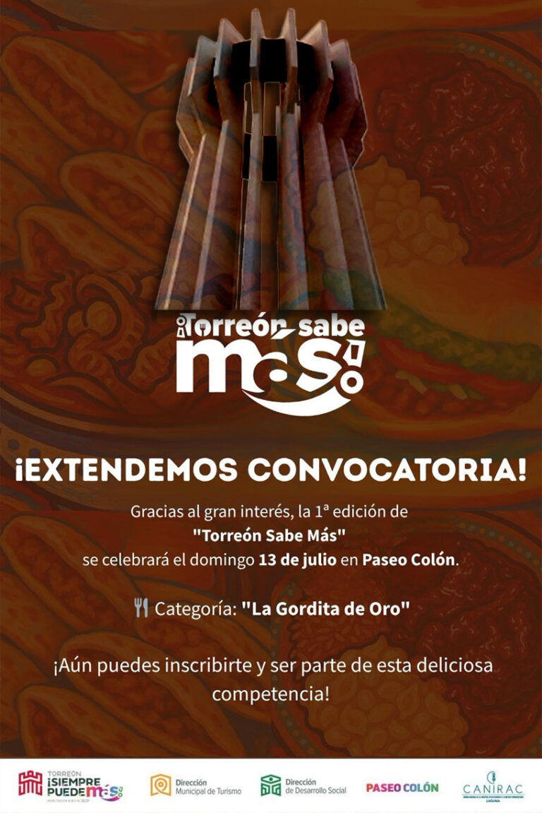 Gracias al gran interés que ha despertado la primera edición del concurso gastronómico “Torreón Sabe Más”, la Dirección de Turismo Municipal y la Dirección de Desarrollo Social anuncian que el evento se recorrerá al próximo domingo 13 de julio en el Paseo Colón. “Con este cambio ... Leer Más