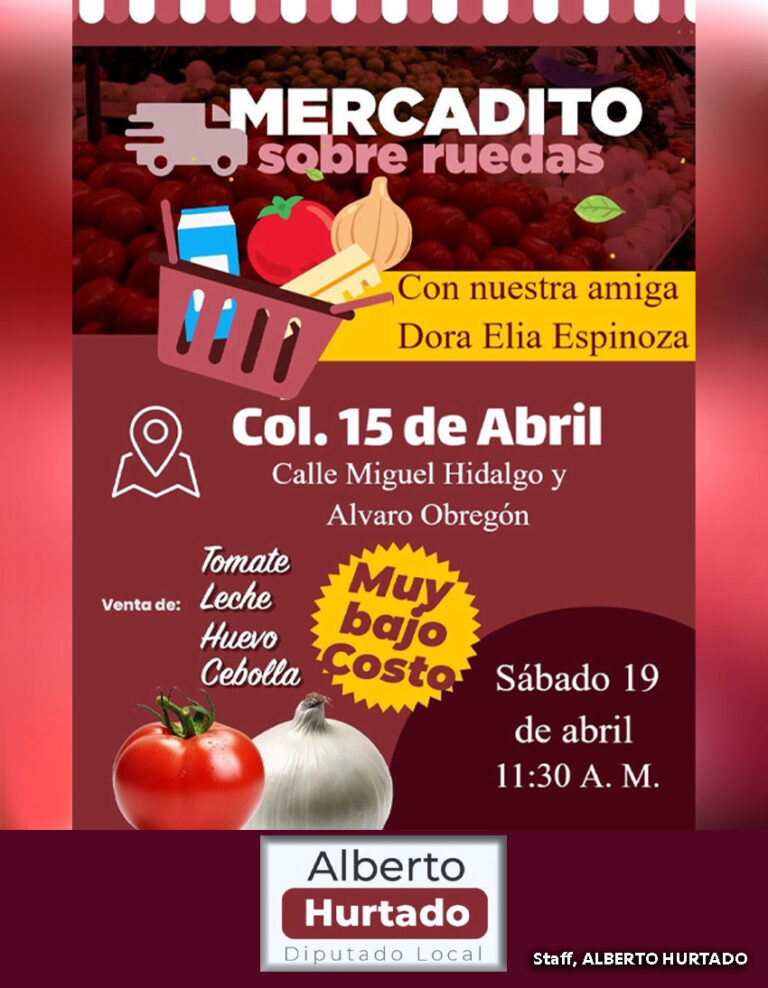 El Mercadito Sobre Ruedas, iniciativa de Alberto Hurtado, diputado de MORENA se fortalecen e invita a toda la ciudadanía a que aprovechen sus bajos precios en beneficio de todos los vecinos ... Leer Más