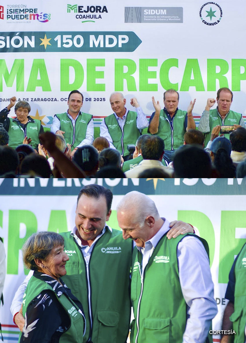 Manolo Jiménez Salinas y Román Alberto Cepeda González entregan obras de pavimentación en Torreón