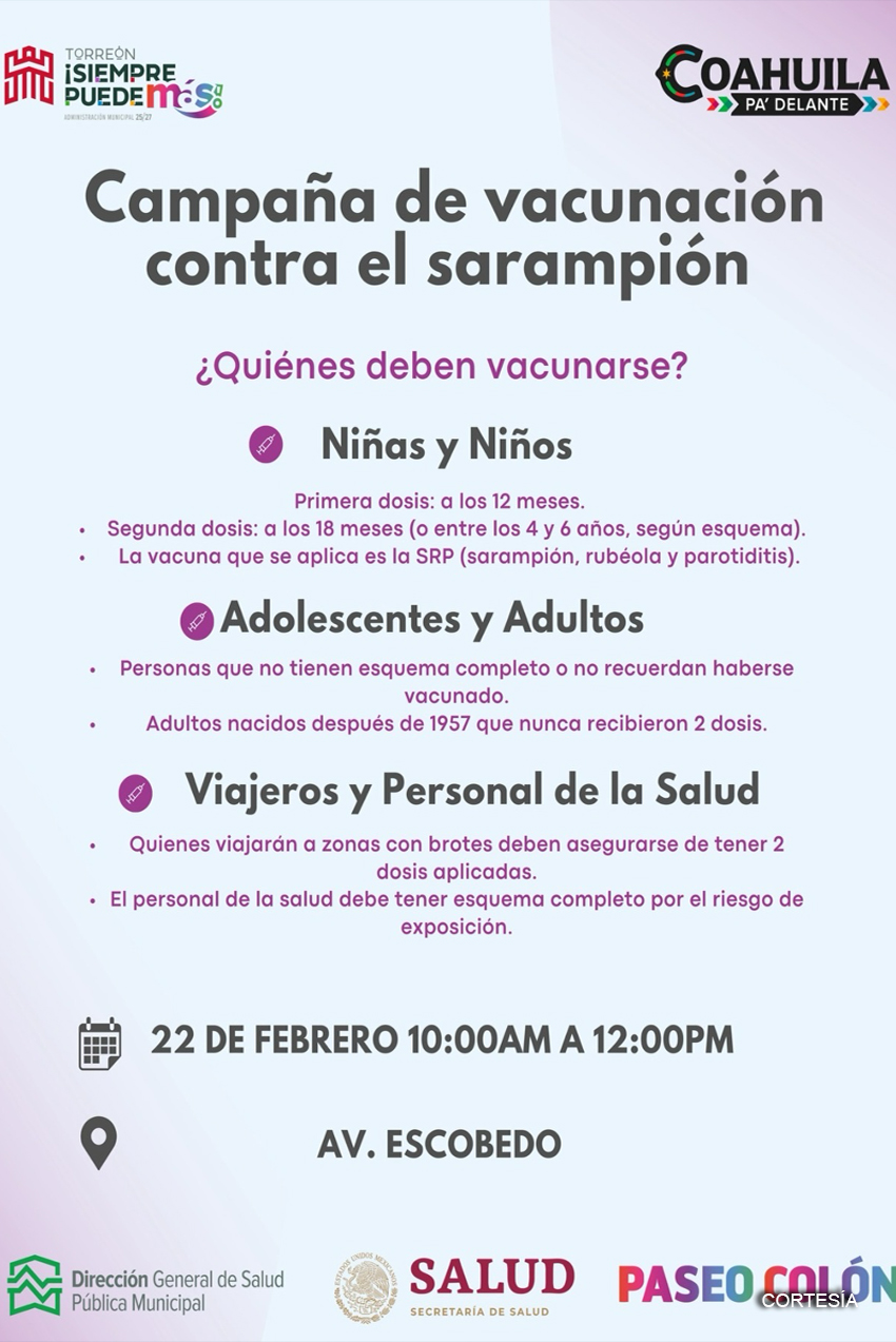 Torreón aprovecha el Paseo Colón como sede de vacunación contra el sarampión