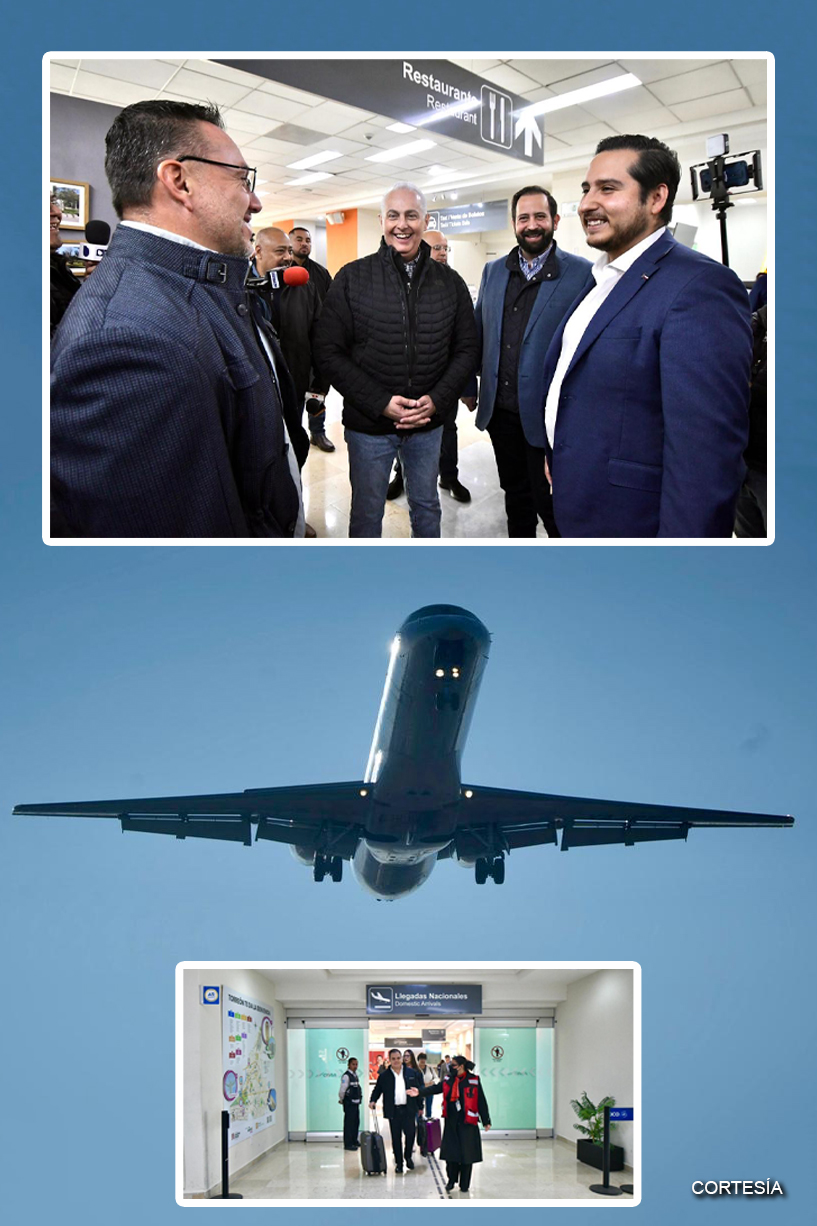 Román Alberto Cepeda González recibe el vuelo inaugural de la ruta Monterrey-Torreón, y anuncia nueva conexión aérea a Hermosillo