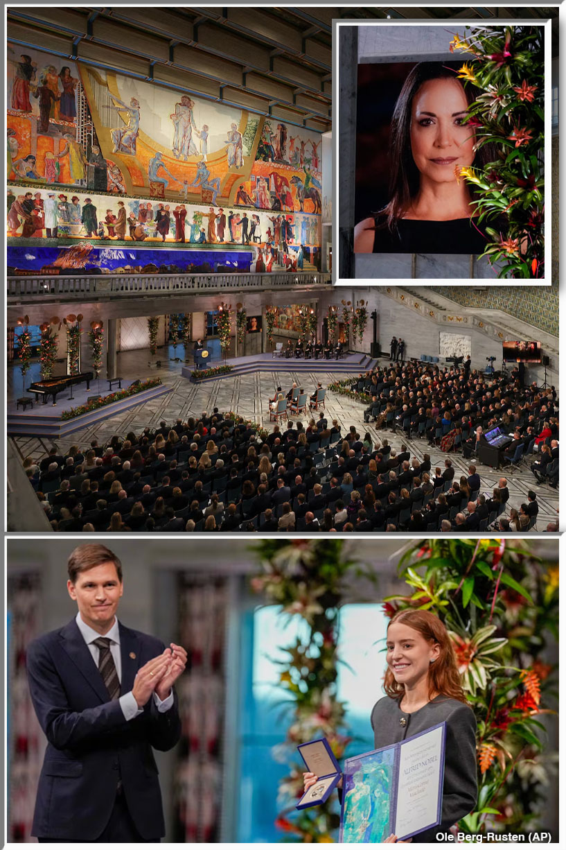 OSLO, Noruega; 10 de diciembre de 2025.— La líder opositora venezolana y premio Nobel de la Paz, María Corina Machado, hizo un llamado global a las democracias para estar preparadas para luchar por la libertad, un requisito esencial para su supervivencia. El mensaje fue transmitido por su hija, Ana ... Leer Más