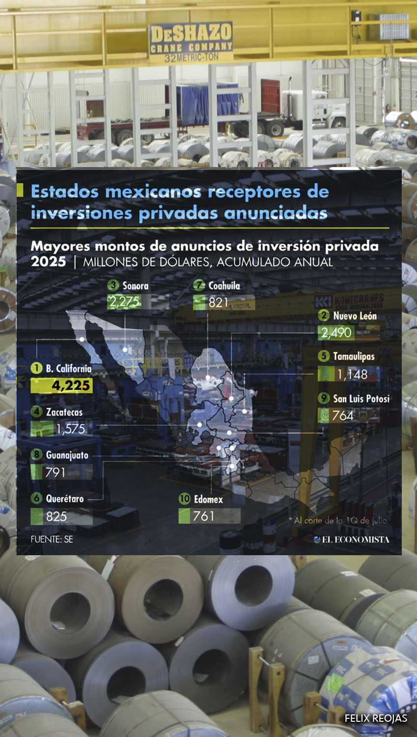 Estados mexicanos receptores de inversiones privadas anunciadas en 2025