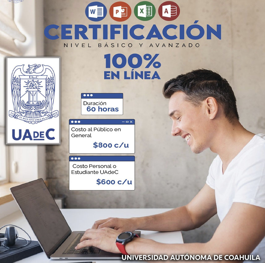 SALTILLO, Coahuila. 4 de agosto de 2025. La Universidad Autónoma de Coahuila a través de la Coordinación General de Educación a Distancia, invita a certificarse internacionalmente en Microsoft Office a través de la plataforma Testing Program, el costo del curso por aplicación para el público en ... Leer Más