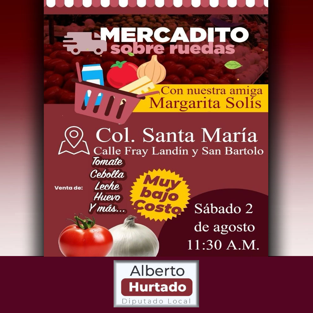El Mercadito Sobre Ruedas, iniciativa de Alberto Hurtado, diputado de MORENA se fortalecen e invita a toda la ciudadanía a que aprovechen sus bajos precios en beneficio de todos los vecinos ... Leer Más