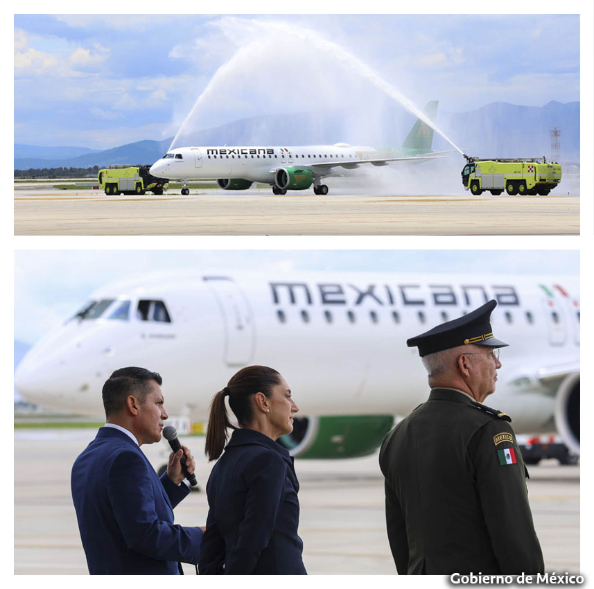 Desde el Aeropuerto Internacional Felipe Ángeles (AIFA), la Presidenta Claudia Sheinbaum Pardo recibió la primera de 20 aeronaves Embraer E195-E2 para Mexicana de Aviación, la aerolínea del Estado mexicano y del pueblo que fue rescatada por la Cuarta Transformación y que simboliza la voluntad que ... Leer Más