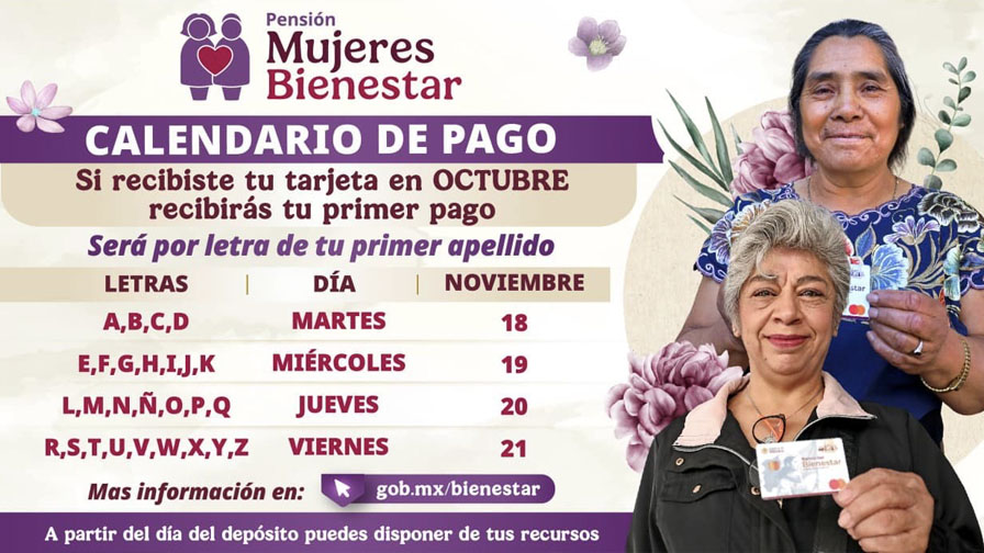 El Gobierno de México, a través de la Secretaría de Bienestar, anunció el inicio del pago para las nuevas beneficiarias de la Pensión Mujeres Bienestar, dirigida a mexicanas de entre 60 y 64 años. Las mujeres que se registraron en agosto y recibieron su tarjeta en octubre recibirán su primer apoyo ... Leer Más