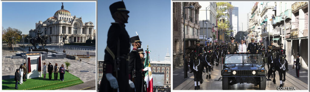 La Jefa del Ejecutivo Federal develó la placa conmemorativa a la Marcha de la Lealtad en la lateral del Palacio de Bellas Artes, en donde se reconoce al teniente alumno de Estado Mayor, Gerardo Ríos Covarrubias, quien perdió la vida durante el recorrido del Castillo de Chapultepec a Palacio Nacional que realizó, el 9 de febrero de 1913, Francisco I. Madero, como muestra de que su entrega dio ejemplo “de la congruencia de lealtad con que se forjan las y los hijos del Heroico Colegio Militar”.