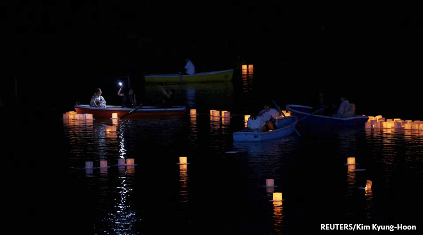 Botes con gente alrededor de faroles durante el Festival de Faroles Flotantes en Tokio, Japón. Cerca de mil faroles, con mensajes de gratitud,se sueltan en el agua. agosto 2, 2025 por Brief_Coahuila
