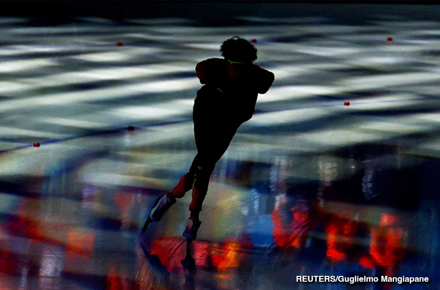 Hanbin Liu de China calentando antes de su carrera en los 1500 m de patinaje de velocidad masculino, en los Juegos Olímpicos de Invierno, Milán – Cortina febrero 20, 2026 por Brief_Coahuila