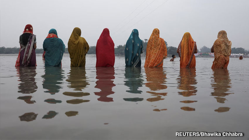Mujeres hindúes adoran al dios Sol en las aguas del río Yamuna durante el festival religioso hindú de Chhath Puja en Nueva Delhi, India. octubre 30, 2025 por Brief_Coahuila