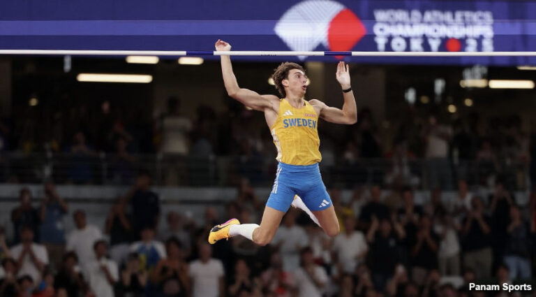 Mondo Duplantis salta 6.30 para establecer un nuevo récord mundial en el Campeonato Mundial de Atletismo de Tokio 2025.