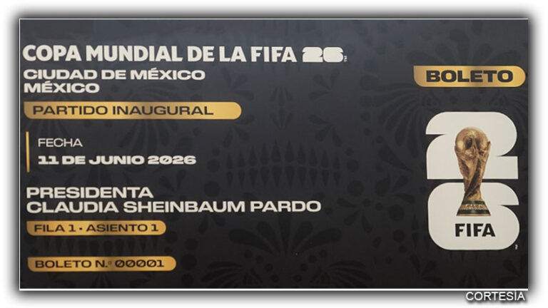 Presidenta Sheinbaum recibió de la FIFA una réplica de un boleto simbólico para el partido inaugural.