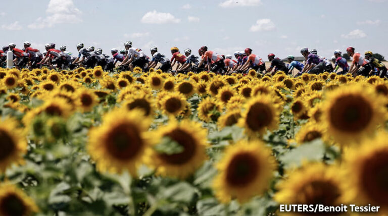 Vista general del pelotón en acción durante el Tour de Francia.
