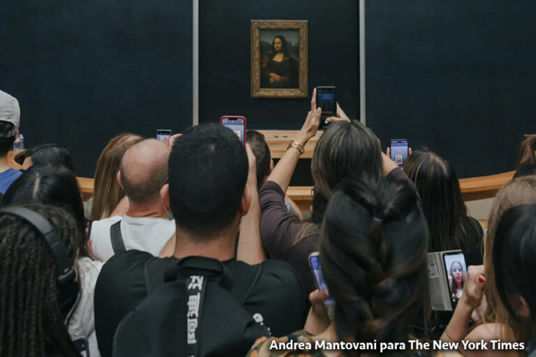 Visitantes fotografiando la Mona Lisa en la Sala de los Estados del Museo del Louvre de París.
