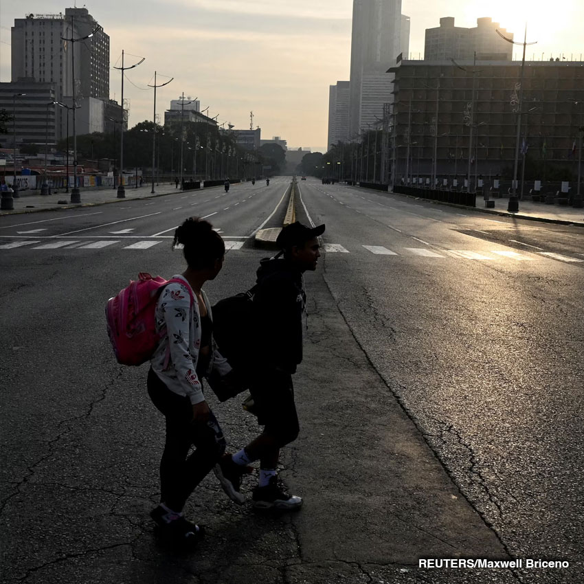 YA CON TRUMP. Una pareja se toma de la mano mientras cruza una calle vacía en Caracas, Venezuela