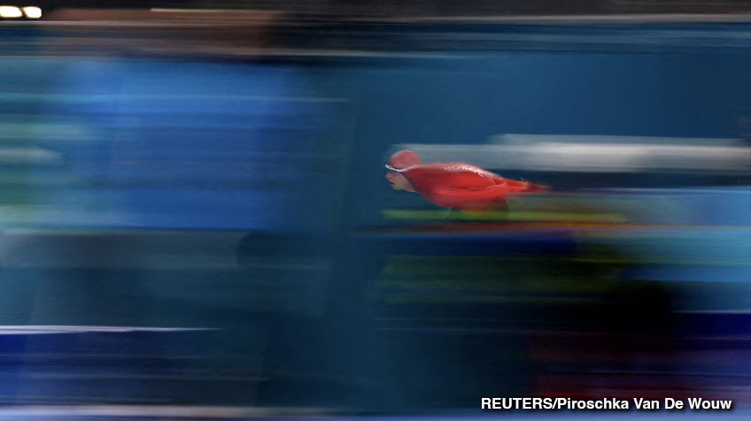 Sander Eitrem de Noruega durante la prueba masculina de patinaje de velocidad de 5000 m. febrero 9, 2026 por Brief_Coahuila