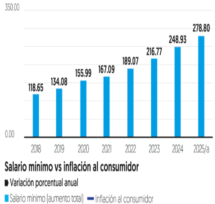 Según declaraciones de la presidente Sheinbaum se propondrá un aumento del 11% a pesar de que los sindicatos aliados a Morena piden llegar a 300 pesos diarios.